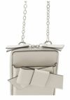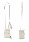 【人気のリボンデザインがスマホショルダー&リップケースに】 FRAY I.Dで大人気のリボンシリーズ。 今シーズン、スマホが入るサイズのポーチとリップケースがセットになった、マルチショルダーバッグが新たに仲間入り。 立体感のあるモードなリボンをあしらったファスナー付きポーチは、充実の収納力が自慢。 フロントのオープンポケットはiPhone16が入るサイズにし、裏側にはカード3枚分が入るカードスロット付き。 ペンなど長めの物も収納可能なので、これひとつでお出かけが叶います。 ポーチとリップケースそれぞれに、アクセントとしてFRAY I.Dのメタルエンブレムをあしらいました。 リボンバッグとセット使いをしたり、ビジューパールリボンミドルバッグ(FWGB255312)に取り付けたりと自分らしくアレンジしても◎。 ポーチとリップケースはそれぞれ単品でも使用できます。 ベーシックなWHTとBEG、アクセントになるLPNKとLBLUの4色からお選びいただけます。