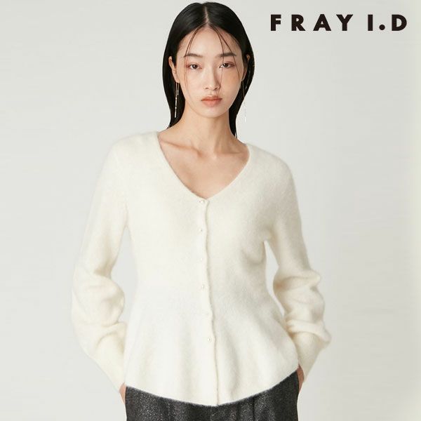 【優美なペプラムカーデをフォックスカシミヤでさらにリッチに】 美しい曲線を描くペプラムシルエットのカーディガンがエレガント。 フォックスカシミア素材の優しい風合いも相まって、クラス感を高めてくれます。 気になる腰回りをカバーしつつすっきり華奢見えが叶う計算されたシルエットや、前後のVネックラインが女性らしいムードをアシスト。 前立てには歪なパールボタンをあしらい、上品なムードの中に洒落たひねりを加えました。 軽めの羽織りとして、ボタンを留めてプルオーバーとして、様々なスタイリングにマッチします。