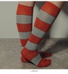 ボーダー柄ハイリブソックスのPIGGY SOCKS(ピギーソックス)。 ・靴下の内側にストレッチ糸が入っているので、履き口もフィット感を残しつつ優しく編み上げ、快適な履き心地をたのしめます。・従来のデザインに比べ、よりファッション性の高い足袋型ソックス。・スタイリングのアクセントにも最適な一足です。※こちらの商品はリンキング仕様では無く、ミシンで縫製しております。※こちらの商品はドレスパイル仕様では御座いません。