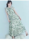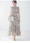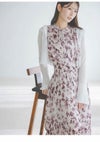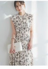 【定番人気のフリルプリントワンピースが、華やかな大人の雰囲気にて仕上がりました】 SNIDEL定番人気のサステナブル素材を使用したプリントワンピースが到着しました。 今季は抽象的なかすれ加工のフローラルパターン柄でシックかつ大人な雰囲気に仕上げています。 肩フリルには消しプリーツ加工、フロントには繊細なピンタックディティールを施して上品に仕上げました。 スカート部分は軽やかなプリーツで柔らかな表情に動きを出しています。 ウエスト位置にはたっぷりとゴムシャーリングを施してメリハリを出し、楽ちんなのにスタイルアップ効果も期待大です。 同色でお作りしているシアーフリルコンパクトカーディガン(SWNT261197)とのセットアップコーディネートもおすすめです。 肩紐の長さ調節ができるアジャスタ付きのインナーキャミワンピースがセットなので安心してご着用いただけます。 ワンピースはフロントの比翼仕立てボタンで着脱いただけるデザインです。 胸元のボタンを少し開け、抜け感を出してご着用もいただけます。 胸元の細リボンは取り外しが可能です。