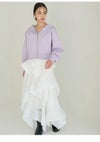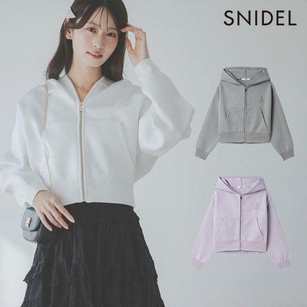 【胸元エンブレムがポイント、着回し万能ニットパーカー】 肉厚ボンディングニットで仕上げた、立体感のあるパーカーです。 胸元のSNIDELエンブレムが上品なアクセントに。 少し短丈のバランスで、トップス感覚でもコーデに取り入れやすい1枚です。 【Fabric】 ふくらみ感のあるボンディング素材で毛玉にもなりにくく、 カジュアルながらも高見え。 ホワイト、グレー、春らしいラベンダーの3色展開です。