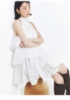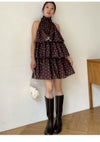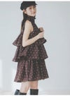 【華やかなラッフルデザインがトレンド感を演出する主役級ミニワンピース】 軽やかな素材に立体的なティアードデザインを 組み合わせた春夏ムードを盛り上げるミニワンピースが登場。 ランダムに構築的に揺れるデザインが印象的なワンピースは 綺麗に広がるAラインシルエットで体型カバーにも◎。 襟ぐりは細かなフリルディティールのハイネックデザイン。 首元後ろボタンで着脱可能です。 裏地付き。 【Fabric】 透け感のある軽やかなジャガード生地のホワイト、 トレンドのブラウンベースのドット柄、華やかな大粒ドットのブラックの3色展開。
