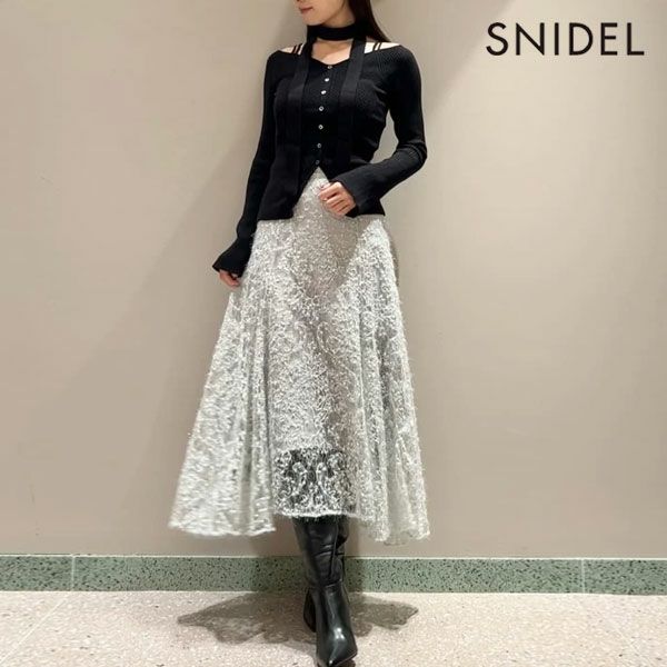 - 【SALE50%OFF】【即納】 スナイデル SNIDEL ボトムス 25秋冬 ファブリックイレヘムフレアスカート ロング丈 swfs254268