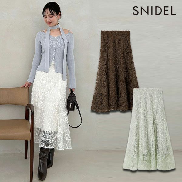 - 【SALE50%OFF】【即納】 スナイデル SNIDEL ボトムス 25秋冬 ファブリックイレヘムフレアスカート ロング丈 swfs254268