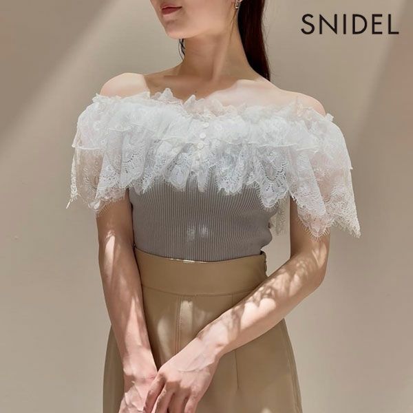 5. 【SALE50%OFF】【即納】 スナイデル SNIDEL トップス 25秋冬 レースドッキングニットプルオーバー ミドル丈 半袖 swnt254137