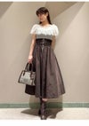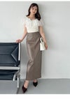 キレイめなスカートにも、さまざまなボトムに合わせやすいデザインです。