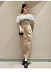 SALE!在庫限りの早い者勝ち 【SALE50%OFF】【即納】 スナイデル SNIDEL トップス 25秋冬 レースドッキングニットプルオーバー ミドル丈 半袖 swnt254137
