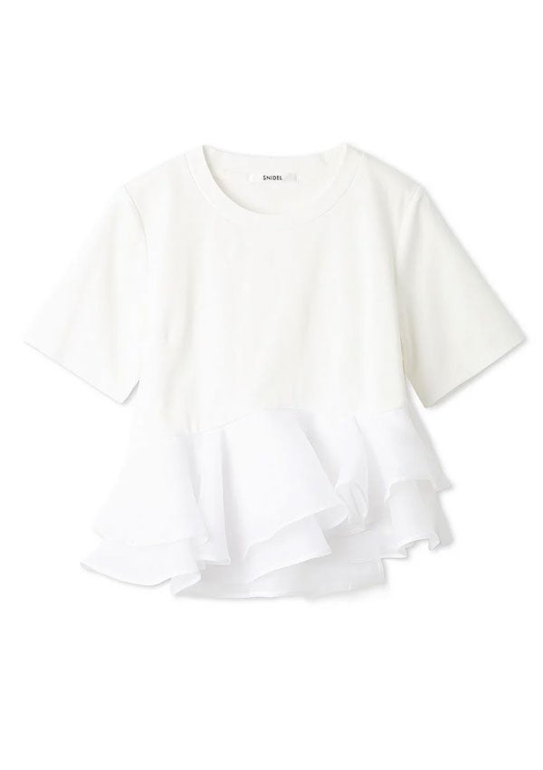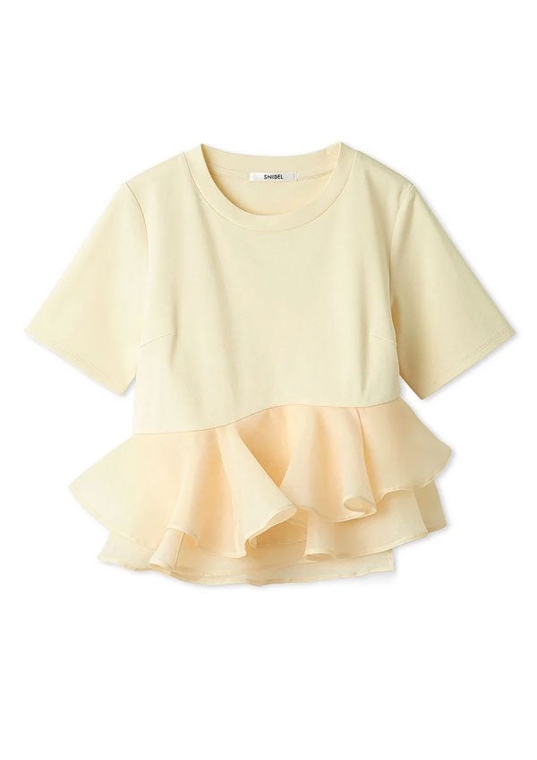 他の画像を見る 2026 Summer Collection 【即納】 スナイデル SNIDEL トップス 26春夏 ドッキングペプラムカットプルオーバー 半袖 クルーネック Tシャツ フリル swct262007 即納 ポイント5倍 ¥ 11,880 ¥ 11,880 税込 販売開始前です。 販売期間 2026/04/27 12:00 〜 2026/05/31 23:59 カートに入れる お気に入りに登録する