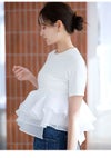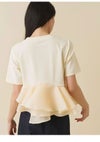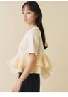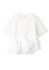 【シアーペプラムドッキングトップス】 ・カットソーとシアー素材を組み合わせた華やかなドッキングトップス。 ・アシンメトリーなペプラムフリルで立体感のあるシルエットに。 ・一枚でスタイリングが決まる主役級デザイン。 ・ワイドパンツやタイトスカートと合わせたメリハリコーデがおすすめです。 ・接触冷感機能付きのカットソー素材で快適な着心地。 ・ペプラム部分はハリのあるオーガンジーを使用。 ・透け感を気にせず着られる安心設計です。