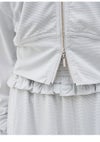 【フェミニンスポーティを叶える機能性ラインパーカー】 『LUMISHADE by SOLAMENTR』とは… 太陽の光から、肌とカラダをやさしくいたわる。 気になる紫外線や近赤外線をダブルでブロック。日差しによる肌ダメージを抑え、衣服内の温度上昇を抑えます。 (紫外線90%以上、近赤外線70%以上カット ※当社調べ) 近赤外線は紫外線よりも波長が長く、肌の奥深くまで届きます。 さらには熱を帯びているため、肌の組織にダメージを与え、シワやたるみを引き起こします。これが「光老化」です。 肌が太陽にさらされた時のジリジリ感は、近赤外線の熱によるものです。 『LUMISHADE by SOLAMENTR』はこの「近赤外線」に着目し、従来品よりも遮断率を引き上げることを目的に開発された当社オリジナル素材です。 紫外線はもちろん、新常識である「近赤外線」をカットすることで、未来の肌をいたわり新しい日常を演出します。 【Design/Styling】 ・スポーティなラインデザインにリボンディテールを添えた、大人フェミニンなパーカー。 ・左胸のエンブレム刺繍がアクセントとなり、上品な印象をプラスします。 ・逆開ファスナー仕様でシルエットアレンジが可能なのも魅力。 ・旅行やレジャーシーンにはもちろん、ワンピースに羽織ってデイリーにも活躍します。 ・同シリーズのボトムス(SWCP262026)と合わせたセットアップスタイルも楽しめます。