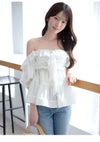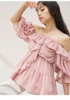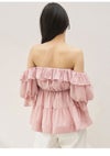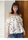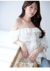 【華やぎを纏うオフショルボリュームフリルブラウス】 ・大胆なオフショルデザインとボリュームフリルで、顔周りを華やかに演出する一枚。 ・デコルテを美しく見せ、女性らしい抜け感を引き立てます。 ・デートや女子会にはスカート合わせでフェミニンに、デニムでカジュアルダウンするのもおすすめです。 【Fabric】 ・軽やかで柔らかな素材を使用し、動きに合わせてふんわりと揺れます。 ・程よいハリ感がフリルの立体感を美しくキープ。 ・カラーはホワイト、アイボリー、ブラック、ピンクの4色展開です。