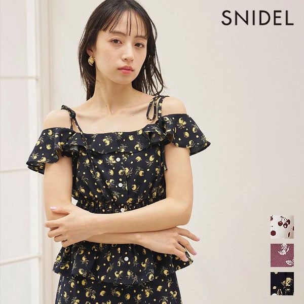 - スナイデル SNIDEL トップス 26春夏 Sustainableフルーツプリントシャーリングブラウス 4月下旬~5月中旬予約 ミドル丈 半袖 swfb262085 swfs262084
