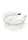 【きらめきを纏うビジューカチューシャ】 ・パールとビジューを散りばめた華やかなカチューシャです。 ・顔まわりに上品な輝きをプラスします。 ・デートやパーティーシーンにもぴったりのアイテムです。 ・シンプルなコーデに合わせてアクセント使いがおすすめです。 【Fabric】 ・メッシュ生地をベースに軽やかに仕上げています。 ・程よいフィット感で快適な着用感です。 ・カラーはホワイト、ブラックの2色展開です。