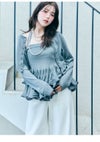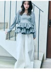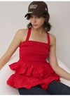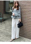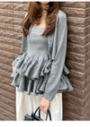 - スナイデル SNIDEL トップス 26春夏 ラッフルティアードベアニットプルオーバー 4月下旬~5月中旬予約 ミドル丈 ベアトップ フリル swnt262056