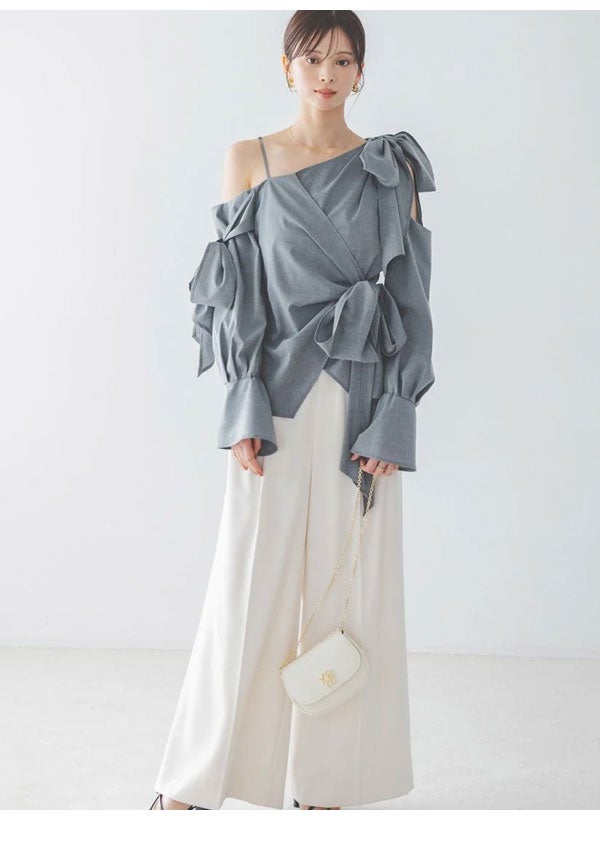 他の画像を見る 2026 Spring Collection 【新作10%OFF】【即納】 スナイデル SNIDEL トップス リボンデザインブラウス 長袖 ミドル丈 ワンショル アシンメトリー swfb261059 即納 ポイント5倍 ¥ 15,950 ¥ 14,355 税込 カートに入れる お気に入りに登録する