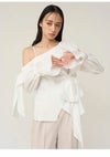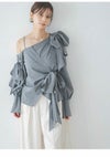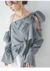 - 【新作10%OFF】【即納】スナイデル SNIDEL トップス リボンデザインブラウス 長袖 ミドル丈 ワンショル アシンメトリー swfb261059