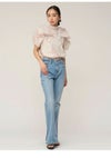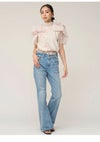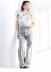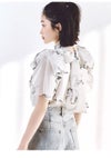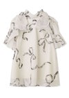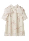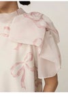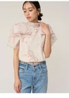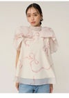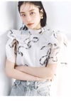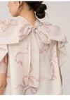【ふんわりと立体感のあるリボン風袖がフェミニンで華やかな人気のオーガンジーシースルーブラウス】 ふんわりとシアー感のある軽やかなオーガンジー生地を使用した、 毎シーズンSNIDELで人気のオーガンジーシースルーブラウスが届きました。 ふんわりと立体感のあるリボンライクな袖が顔まわりを華やかに演出する1枚です。 スタンドカラーで、後ろ側はV開きにリボンをプラスしてバックシャンに仕上げました。 アウトスタイルはもちろん、タックインスタイルもすっきりと着られるアイテムです。 裏地付きです。被りでご着用いただけます。 【Fabric】 無地のオフホワイト、ホワイトの生地にブラックリボンをあしらったブラック、 ピンクベージュの生地にピンクリボンプリントを施したライトピンクの3色展開です。 サステナ素材を使用。