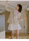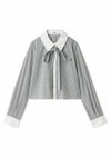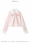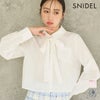 【クロップド丈で今季らしいバランスを叶えるボウタイリボン付きシャツ】 クロップドデザインのシャツに共生地のボウタイリボンを プラスしたシンプルなシャツが届きました。コンパクトな丈感で、 合わせるだけで今季らしいスタイリングを叶えてくれる1枚。 バストから裾にかけてボックスシルエットで仕上げ、 アウトで着用した時にバランスよくご着用いただけるようにデザインしました。 胸元のポケットにはさりげなくSNIDELロゴ刺繍を加えてワンポイントに。 リボンは取り外しが可能。 【Fabric】 ホワイト、ピンク、柔らかな色味のグレーとホワイトのストライプの3色展開。 ベースはポリエステル・レーヨンの柔らかな生地。 襟と前立て・カフスにオックス生地を使用しています。