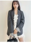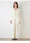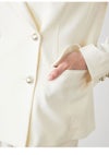 【サステナブル素材を使用!スタイリングをアップデートさせるシンプルダブルブレストジャケット】 ウール混・ツイル見えの生地を使用してお作りした、ハンサムな印象のピークドラペルのダブルブレストテーラードジャケットです。 フラップ付きの脇ポケットと胸ポケットを施した、ベーシックなシルエットでお作りしました。 インナーやボトムスを選ばずに着用いただけて、スタイリングの幅も広がります。 ボタンは、コロンとした丸いフォルムが上品なメタルボタンを使用。