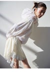 【愛らしくて上品なナイロンレースフード付きブルゾン】 日本のバレエ業界を牽引し続けるブランド 「Chacott」とのコラボレーション第 3 弾。 春夏らしく優しいカラーリングとアシンメトリーに取り入れたレースディテールが目をひく フード付きナイロンレースブルゾンが届きました。 エレガントなバレエの世界観を表現したスペシャル感のあるアイテムです。 シボ感を加えて柔らかな表情を出したUV加工のナイロン生地に繊細なフラワーレースを、 フロントや背中、袖などにドッキングさせてヘルシーな抜け感を出し、 女性らしく軽やかな仕上がりに。 袖口はゴムでフィット感を出し動きやすく仕上げ、 裾は今季らしいバルーンシルエットで丸みを出しているので、 美シルエットで着こなしていただけます。 同素材でお作りしているナイロンレースパンツ(SWFP261106)とのセットアップコーデもおすすめ。 ダブルジップで逆開にもなるデザインです。リラクシーなデザインで、空港コーデにもおすすめ。 メッシュの裏地付きなので、暑い日も快適です。ポケット付きで便利。 フードにはゴムのドロストをプラスしワンポイントに。 ドロストでフードのサイズを微調節いたけます。 胸元には、スペシャルにお作りしたChacott と SNIDEL のロゴ刺繍を施しました。 さらにフロントのジップ金具には、 今回のコラボオリジナルでお作りした「SC」ロゴプレートをプラスし、 ここでしか手に入らない特別感のあるアイテムに仕上げました。 【Fabric】 オフホワイト、ライム、ピンクの3色展開です。