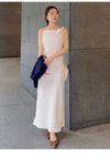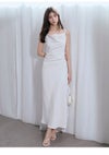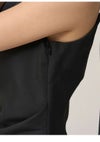 【シンプルながらトレンド感のあるドレープキャミソールロングワンピース】 適度なハリ感がありながらも柔らかく軽やかな素材で、 春先まで着やすいドレープキャミロングワンピスが届きました。 タイトシルエットですっきりとエレガントなアイテムです。 左右で仕様の異なる肩紐や、片側タックのアシンメトリなドレープ感など、 トレンドを程よく散りばめ、シンプルなデザインの中にニュアンスをプラス。 背中側は縦にダーツを入れてカーヴィーに仕上げ、 後ろ姿も抜かりなく美シルエットを演出します。 普段使いにも、ちょっとしたオケージョンにも活躍。 サイドのコンシールファスナーで着脱可能。 【Fabric】 アイボリー、ブラック、フラワープリント柄の3色展開です。 ニュアンスを加えた麻調の軽やかなポリエステル生地です。 また、無地はマシーンウォッシャブルが可能な素材なので、 お家での洗濯が可能です。