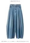 【こなれた印象に仕上がる、ボリュームカーブデニムパンツ】 立体的なカーブシルエットが目を惹く、ボリューム感たっぷりのワイドデニム。 フロントに施した深めのタックが縦ラインを強調し、こなれた印象に仕上げます。 裾内側には丈調整が可能なボタン付きで、シルエットアレンジも楽しめます。