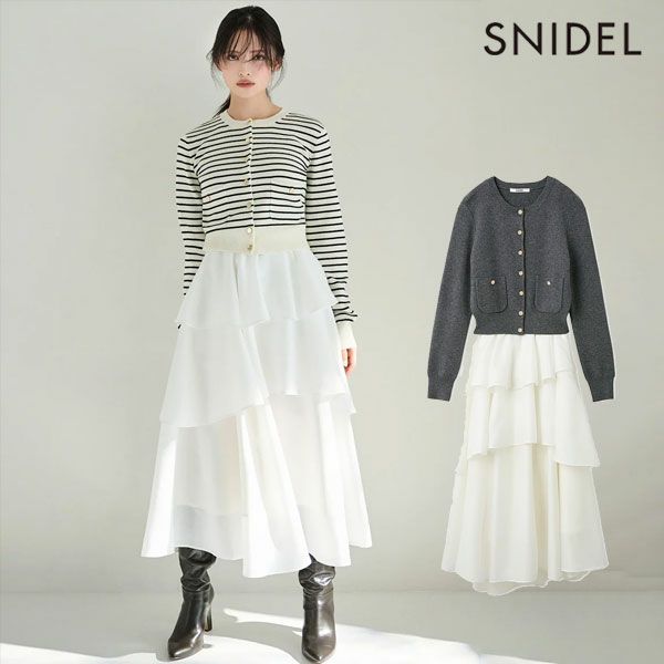 - 【新作10%OFF】【即納】 スナイデル SNIDEL ワンピース 26春夏 Sustainableニットカーデ×ティアードスカートセット セット カーディガン ボトムスSET swno261038