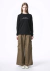 フロントにメッセージを配した、シンプルなロングスリーブTシャツ。