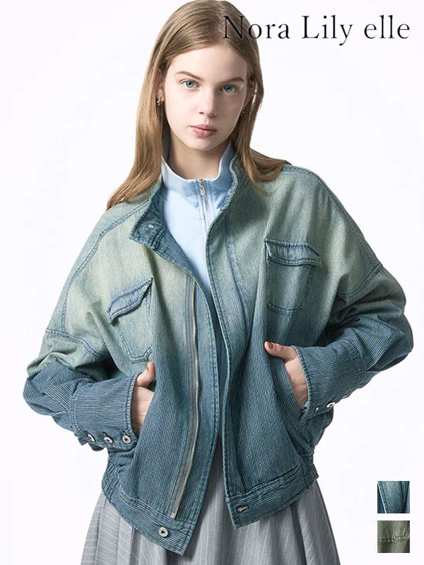 【予約販売】Nora Lily アウター 「elle」Bleached Hickory Stand Collar Blouson-Blue Hickory 2月中旬~3月上旬予約 ブリーチドヒッコリースタンドカラーブルゾンブルーヒッコリー ミドル丈 長袖 226242001 26春夏