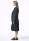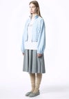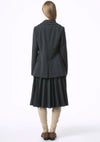 左右で表情を変えたハーフスイッチングデザインのプリーツスカート。