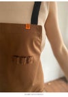 一見スタンダードなデザインのエプロンは、デザイン性の高いポケットワークがポイント!機能的でアクセントにもなるダブルポケットや胸元のホルダーはペン差しとしても活躍します!万人受けするデザインなので贈り物にもぴったり。