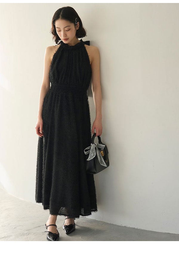 リリー ブラウン LILY BROWN ワンピース 26春夏 アメリカンスリーブフリンジジャガードワンピース 4月上旬~下旬予約 ノースリーブ マキシ丈 フレア lwfo262003