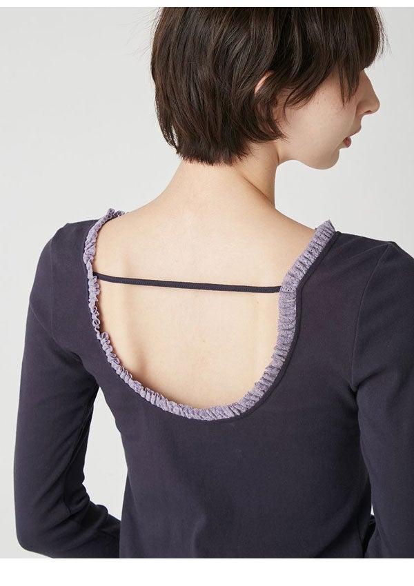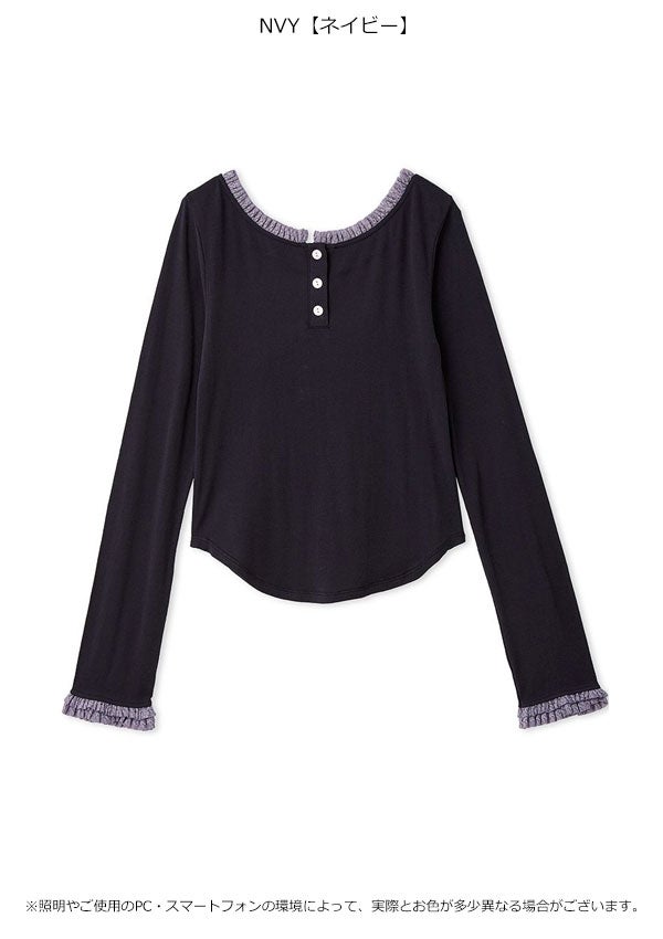 リリー ブラウン LILY BROWN トップス 26春夏 バックオープンヘンリーネックカットトップス 4月上旬~下旬予約 長袖 ミドル丈 カットソー lwct262010