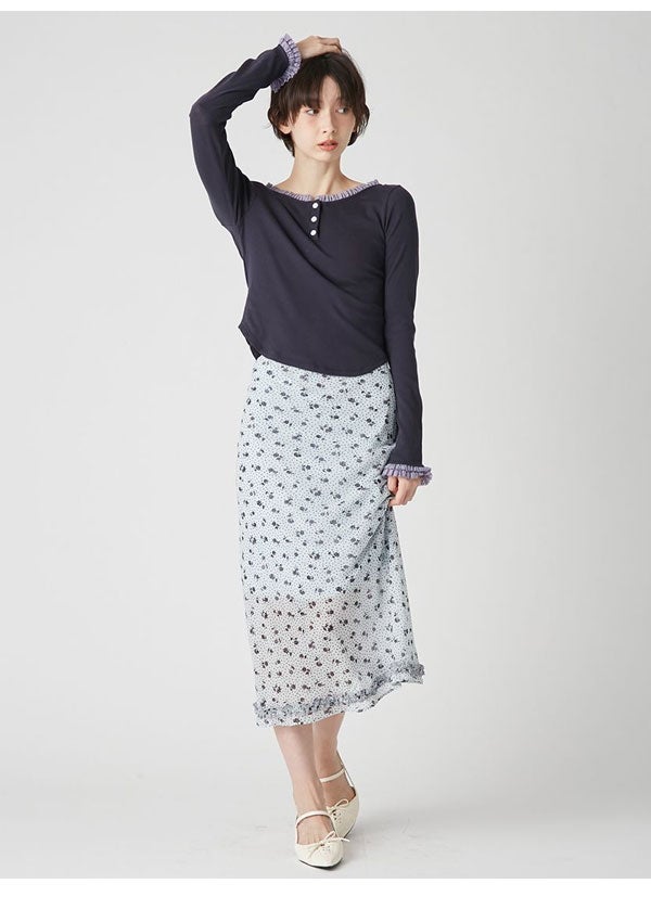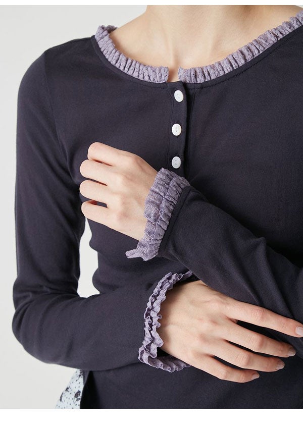 【即納】Nora Lily トップス 「elle」Double-Layer Bicolor Henley Top ダブルレイヤーバイカラーヘンリートップス 長袖 ミドル丈 226280003 26春夏
