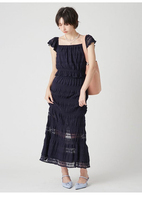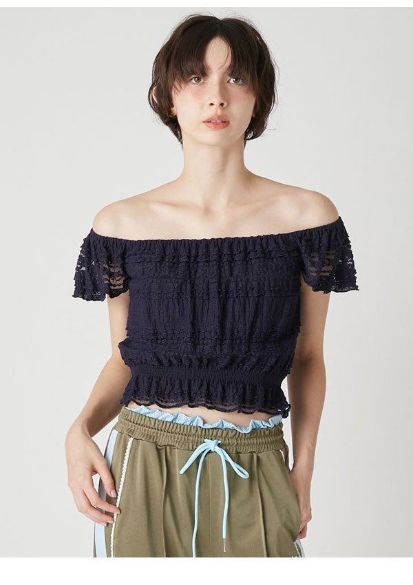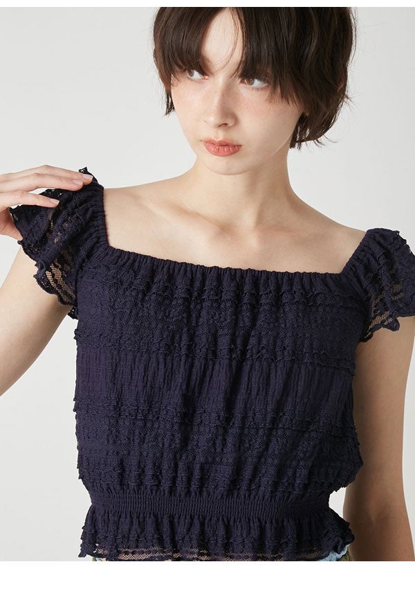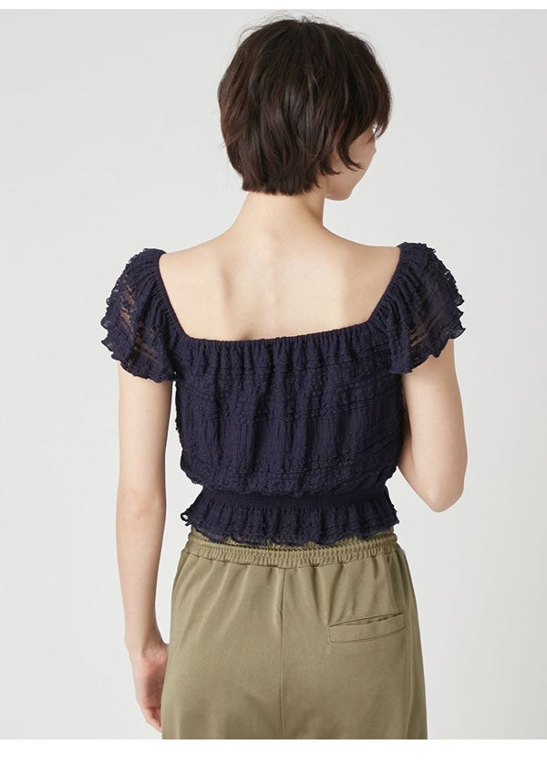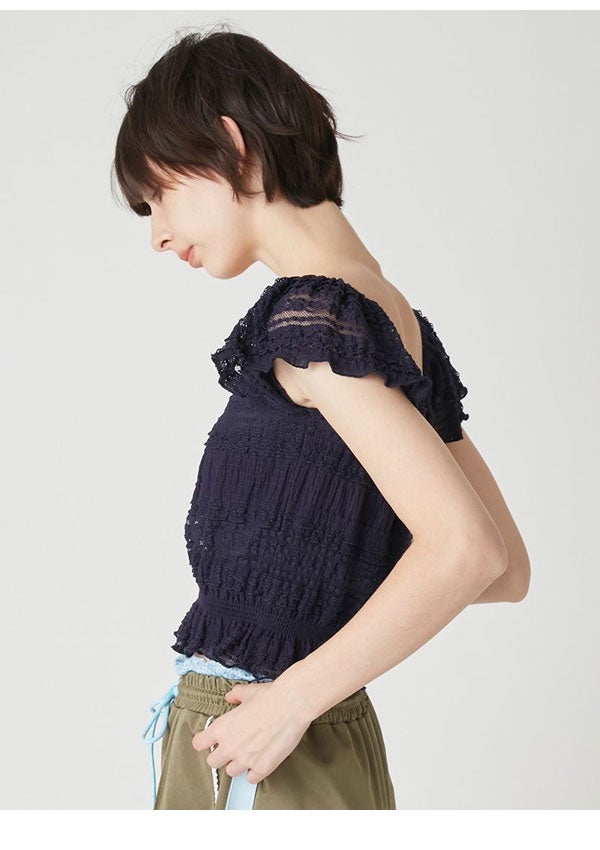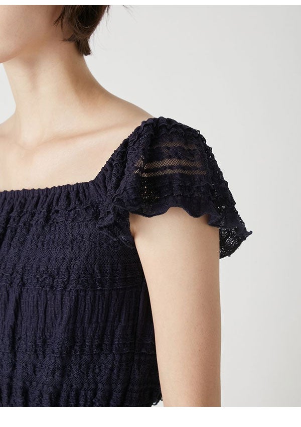 リリー ブラウン LILY BROWN トップス 26春夏 2wayシャーリングトップス 4月中旬~5月中旬予約 半袖 ミドル丈 レース lwct262036