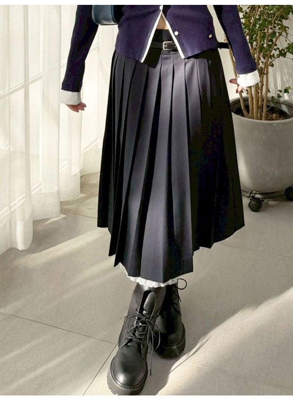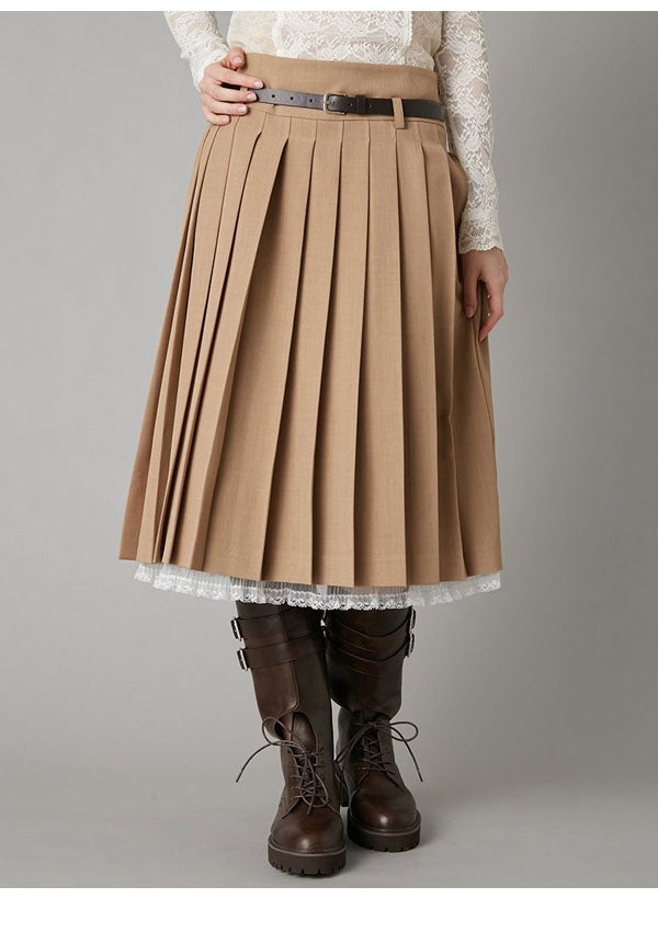 2026 Spring Collection 【新作10%OFF】 リリー ブラウン LILY BROWN ボトムス 26春夏 ベルト付きレースプリーツスカート 3月中旬~4月上旬予約 ミドル丈 プリーツ ベルト lwfs261167