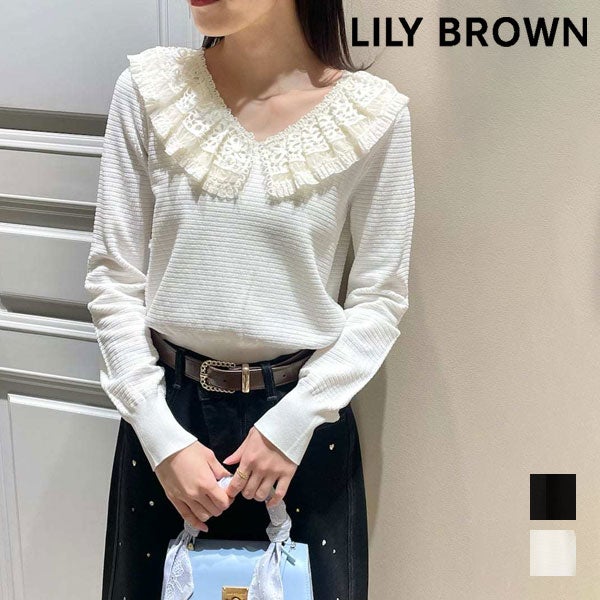 2026 Spring Collection 【新作10%OFF】【即納】リリー ブラウン LILY BROWN トップス 26春夏 レースカラーニットトップス ミドル丈 長袖 レース lwnt261071