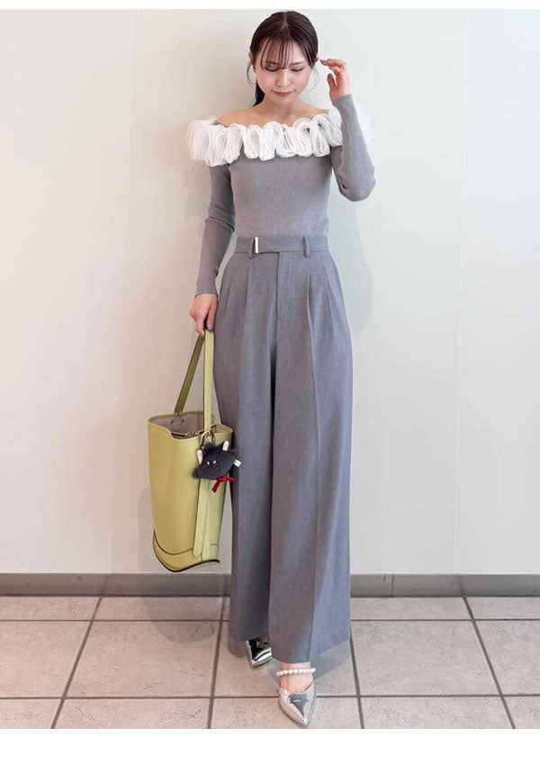 ラッフルフリルが印象的なセットアップは着回し力抜群な3点セット フレイアイディー FRAY I.D セットアップ 26春夏 ラッフルフリルセットアップ/ウォッシャブル・抗ピリング 3月下旬~4月中旬予約 ブラウス ノースリーブ ミドル丈 パンツ フルレングス fwfo261509
