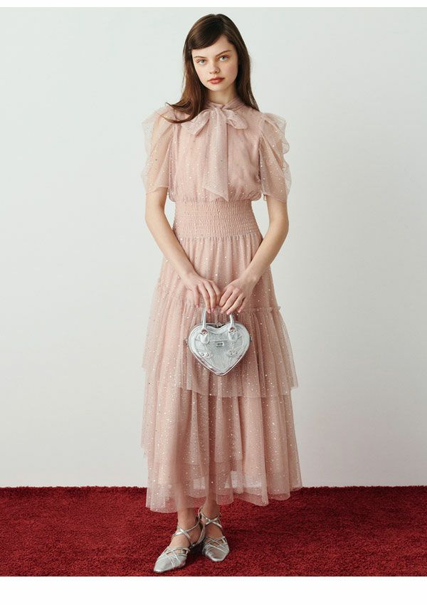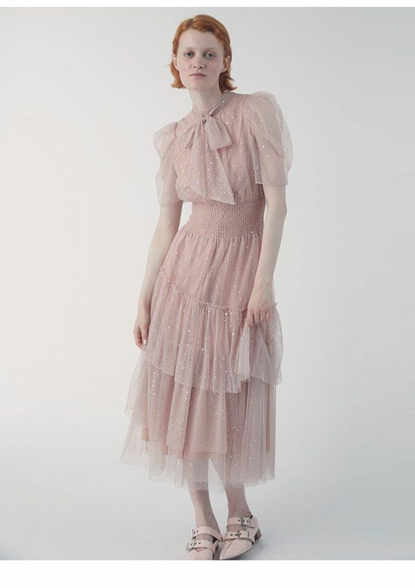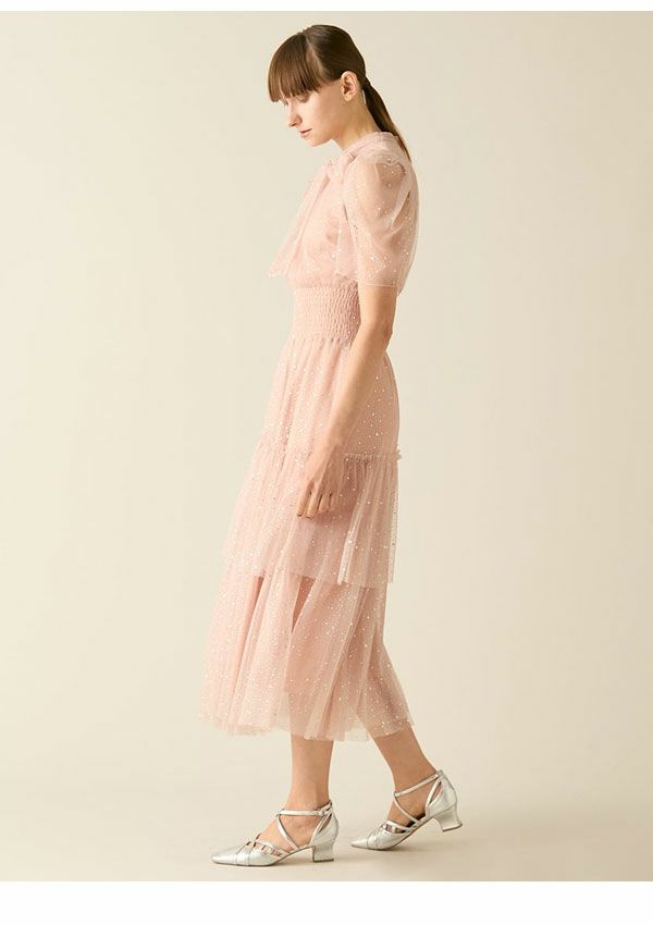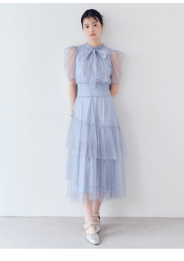 \新作10%OFFキャンペーン/ 【新作10%OFF】 ファーファー FURFUR ワンピース 26春夏 ハーフスリーブラメチュールドレス 1月下旬~2月中旬予約 半袖 マキシ丈 フレア rwfo269005
