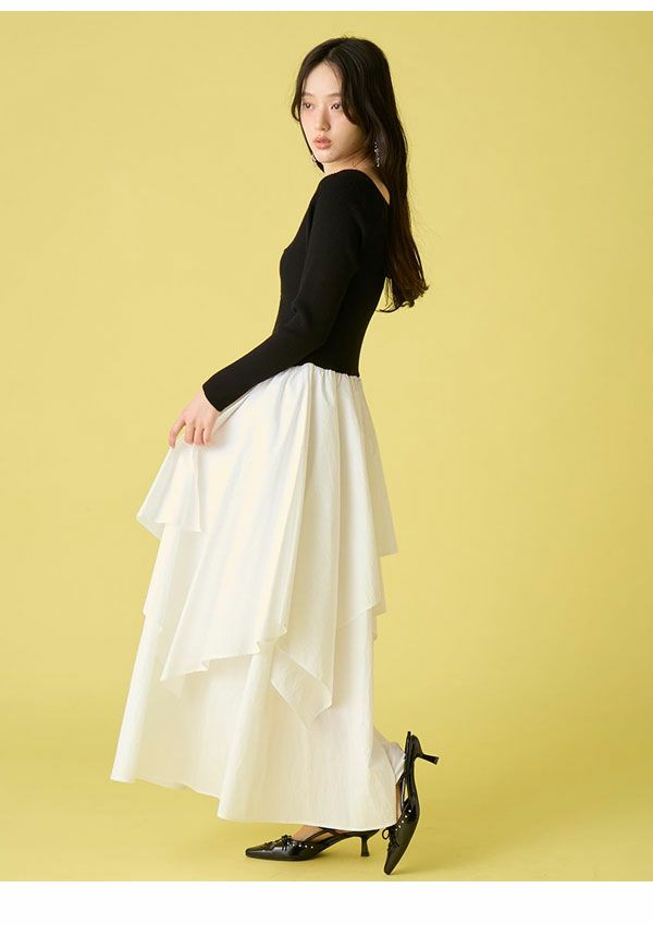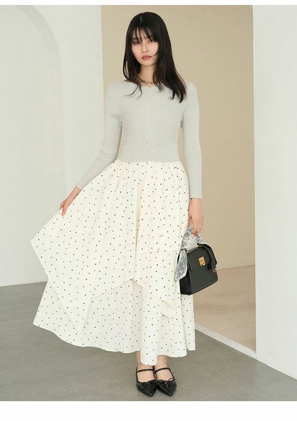 \新作10%OFFキャンペーン/ 【新作10%OFF】リリー ブラウン LILY BROWN ワンピース 26春夏 ニットドッキングワンピース 1月下旬~2月中旬予約 長袖 マキシ丈 フレア lwno261060