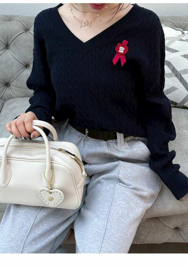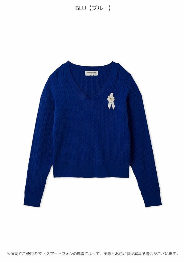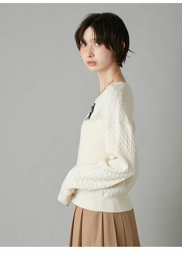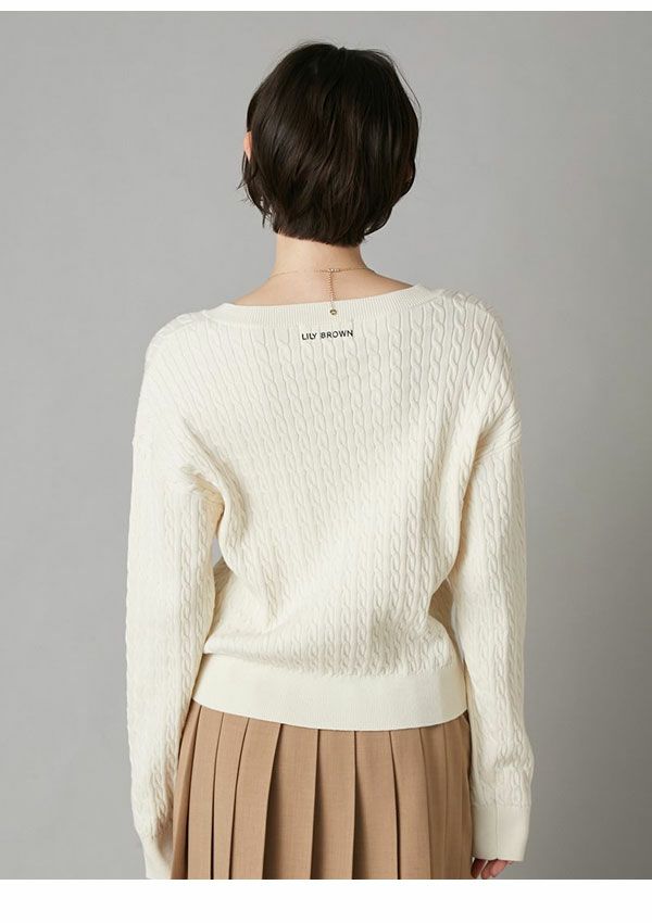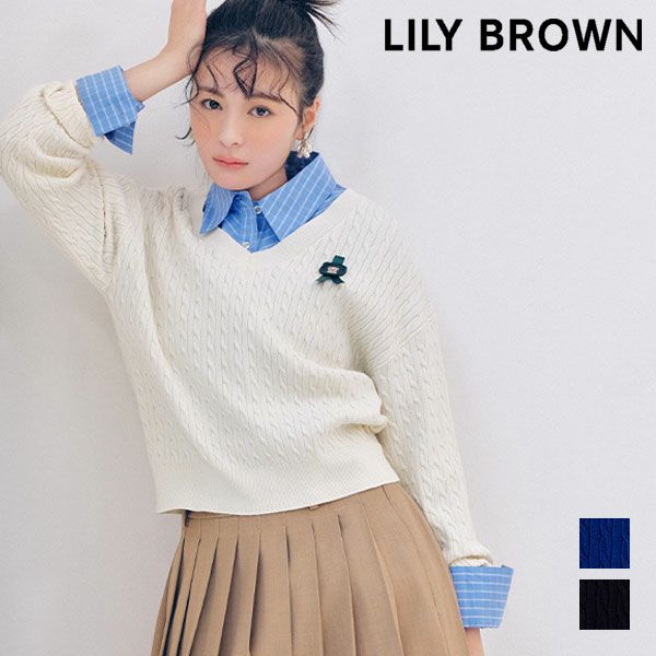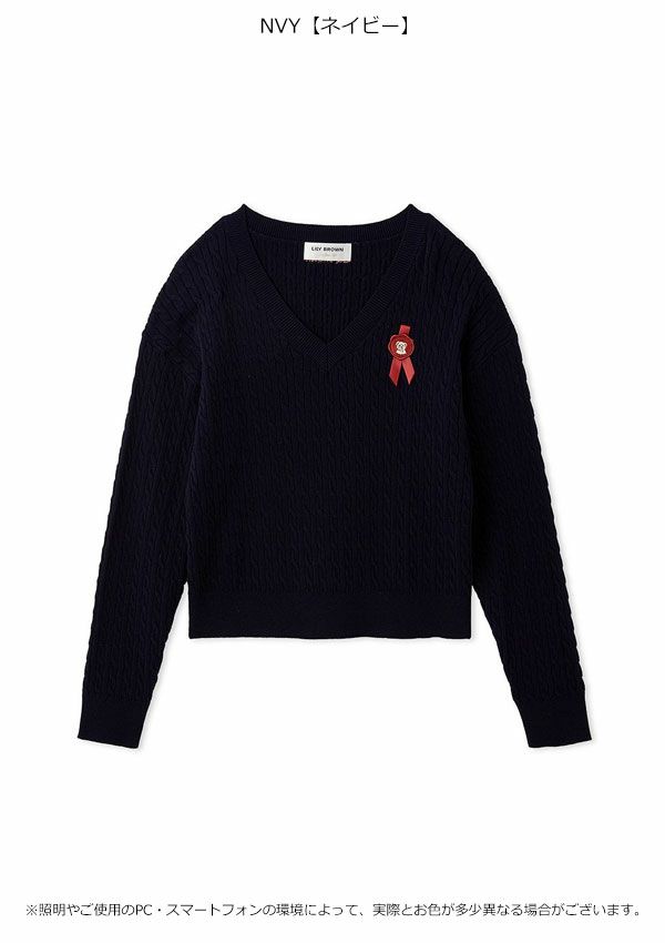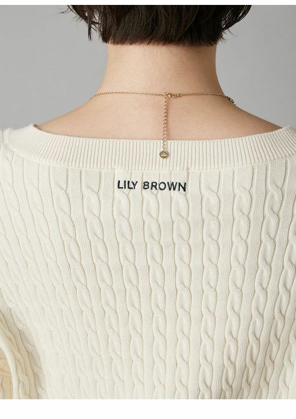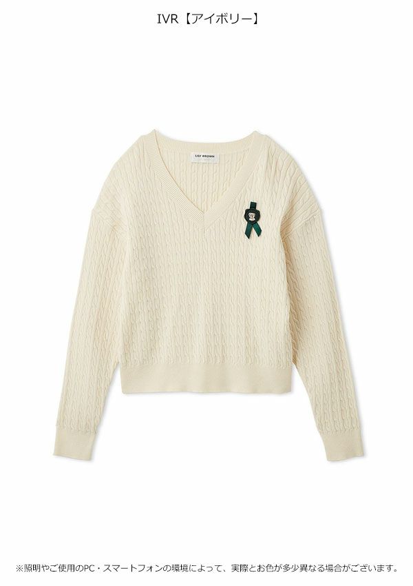 \新作10%OFFキャンペーン/ 【新作10%OFF】リリー ブラウン LILY BROWN トップス 26春夏 Lily Bearスタンプモチーフケーブルニット 1月下旬~2月中旬予約 長袖 ミドル丈 セーター lwnt261095