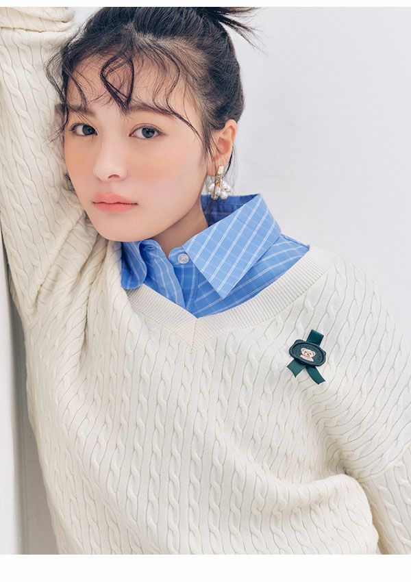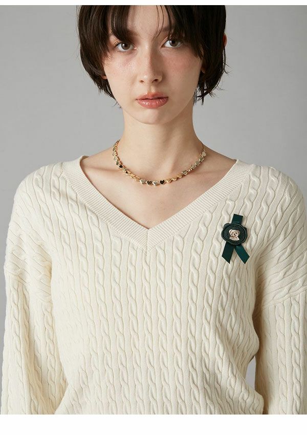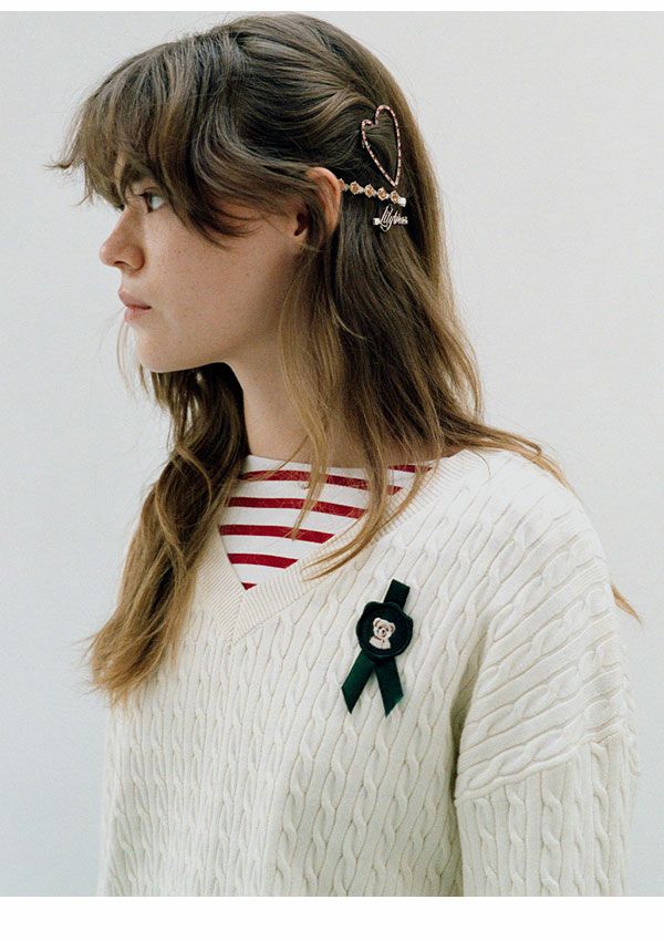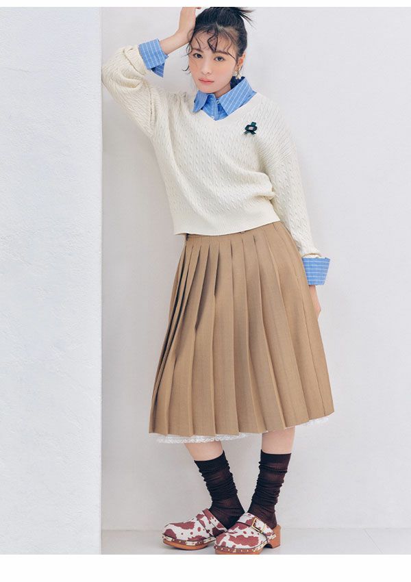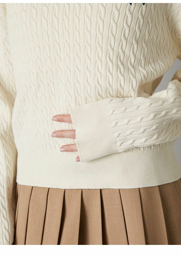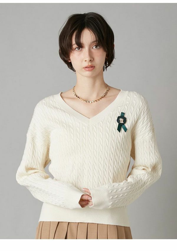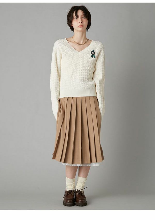 \新作10%OFFキャンペーン/ 【新作10%OFF】リリー ブラウン LILY BROWN トップス 26春夏 Lily Bearスタンプモチーフケーブルニット 1月下旬~2月中旬予約 長袖 ミドル丈 セーター lwnt261095
