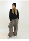 【売り尽くしセール】【即納】 DHSELECT ギャザー入りヘビーウェイトスウェットパンツ ボトムス レディース ロング丈 ストレッチ 部屋着 ゆる ストリート ダンス 韓国 doublek-005
