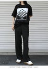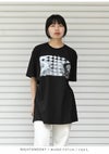 トリックアートで知られるオランダの版画家、マウリッツ・エッシャーの作品がデザインされた一着。インパクトのあるプリント柄ですが、モードなカラーでまとめている為コーディネートを左右する事なく何にでも合わせて着用していただけます。ゆったりとした身幅で作られているので、デニムやスウェット、インしてスカートにも合わせてお楽しみいただけます。