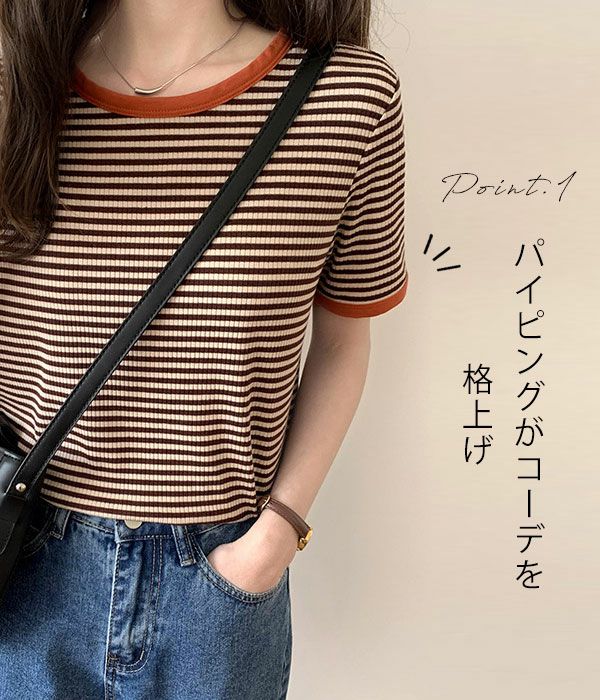 他の画像を見る SALE!在庫限りの早い者勝ち 【売り尽くしセール】【即納】 DHSELECT ボーダーTシャツ レディース 半袖 ミドル丈 カジュアル シンプル リンガーT 細ボーダー 韓国ファッション クルーネック パイピング double-0011 70%OFF 即納 ¥ 4,400 ¥ 1,100 税込 カートに入れる お気に入りに登録する