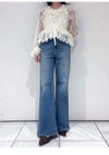 【繊細レースが華やぐサテン切替トップス】 花模様の繊細なレースを贅沢に使用した華やかなトップス。 裾と袖口にはチュール刺繍レースを重ね、 動くたびに揺れるエレガントな表情をプラスしました。 ウエストはサテン生地で切り替えることで、 レースとのメリハリをつけつつスタイルアップ効果も。 後ろウエストはゴム仕様でフィット感があり、 ストレスなく着用いただけます。 【Fabric】 繊細な花柄レースとチュール刺繍レース、 そして艶やかなサテンを組み合わせた異素材ミックス。 インナーキャミソール付きで、 透け感のあるデザインを安心して着用いただけます。