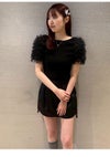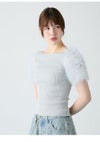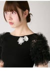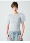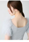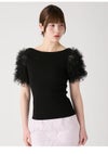 【先行10%OFF】ファーファー FURFUR トップス 26春夏 チュチュスリーブニットトップス 4月下旬~5月中旬予約 ミドル丈 半袖 フリル チュール rwnt262070