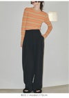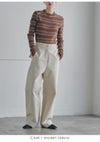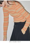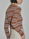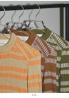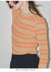 綿糸を使用し、ジャガードでランダムボーダー柄を表現した編み地と配色が目を惹くニットトップス。程良く身体にフィットするシルエットなので、1枚で着るのはもちろん、ベストやジャケットのインナーとしてもお使いいただけるアイテムです。ベーシックな色のボトムスとの合わせがおすすめです。