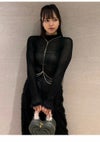 【SALE30%OFF】【即納】 ファーファー FURFUR トップス 24秋冬 フェザートリムリブニットトップス 長袖 ミドル丈 ニット rwnt245051