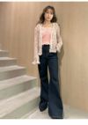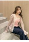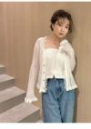 - 【新作10%OFF】【即納】 リリー ブラウン LILY BROWN トップス 25秋冬 レーストリムニットアンサンブル カーディガン キャミソール セット ミドル丈 長袖 透け感 lwnt261035